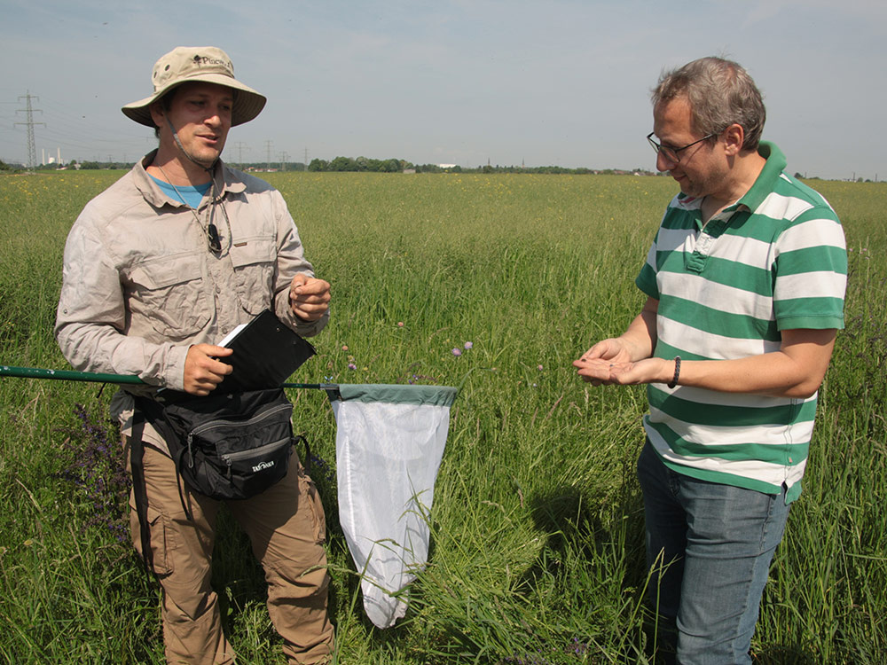 On several dates, an entomologist recorded insects on the pilot areas in terms of abundance and species composition and checked the differences compared with reference areas without beneficial insect flowering strips. Here you can see the preliminary briefing.